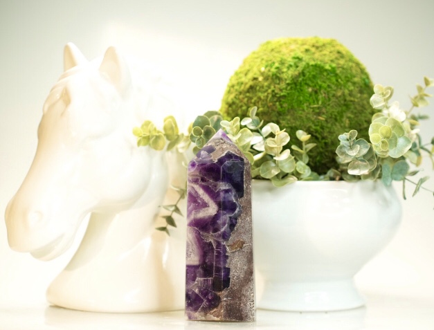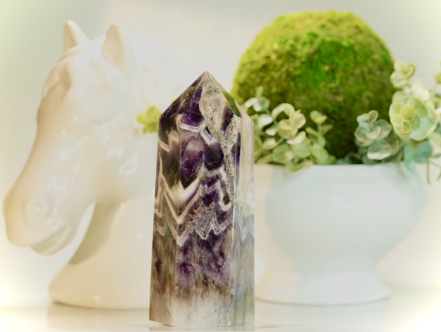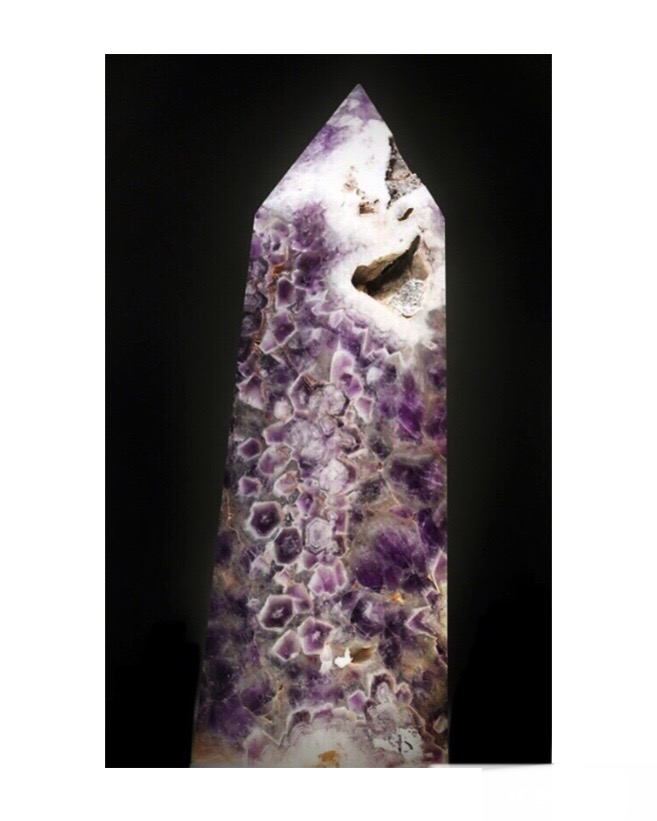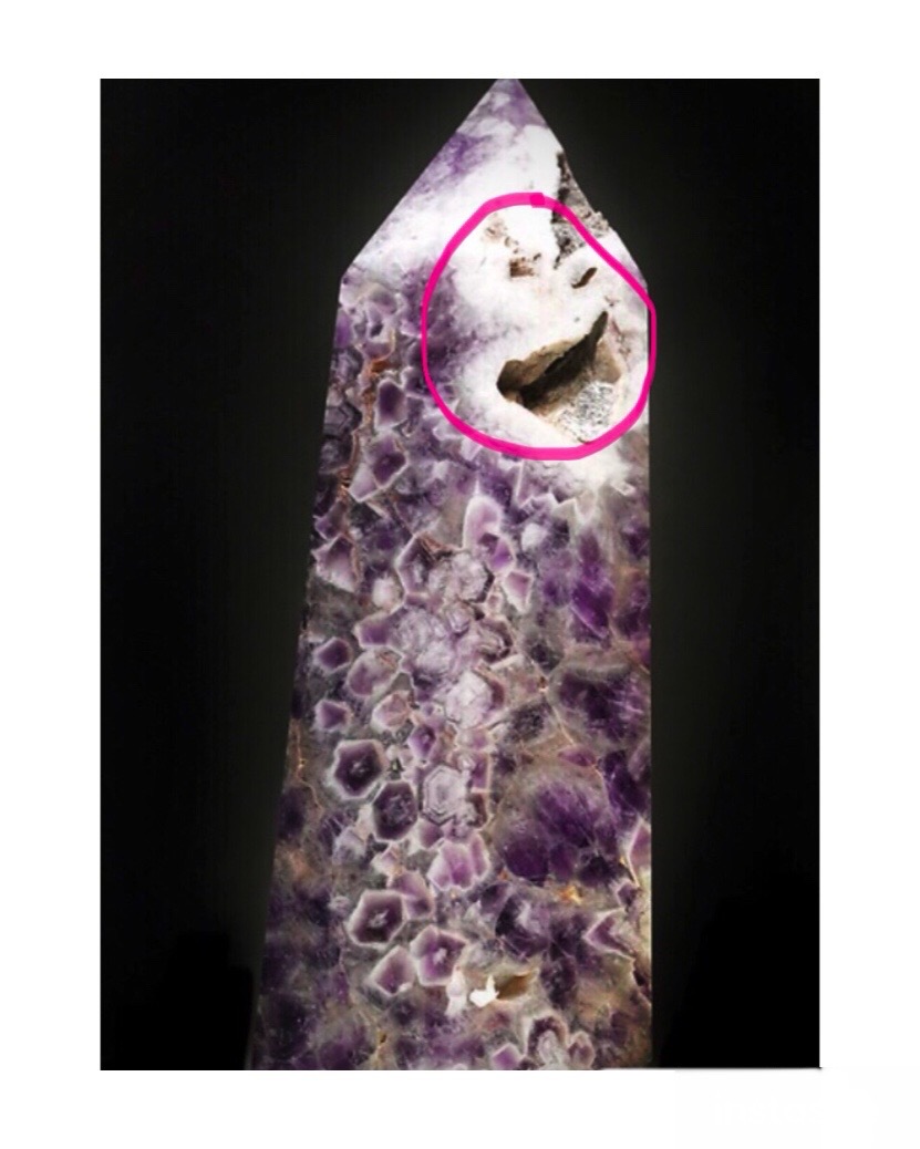 We had to have this special dream amethyst tower! Lucky number 3 right painted by mother earth herself. We love finding numbers, faces, and hearts naturally found on pieces. We know the right person is going to fall in love with gorgeous lucky gal. Standing at 6.5 inches tall and 3 inches wide.