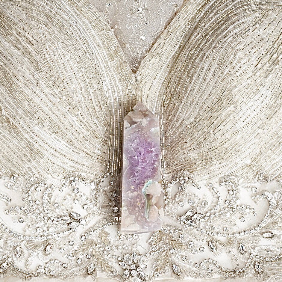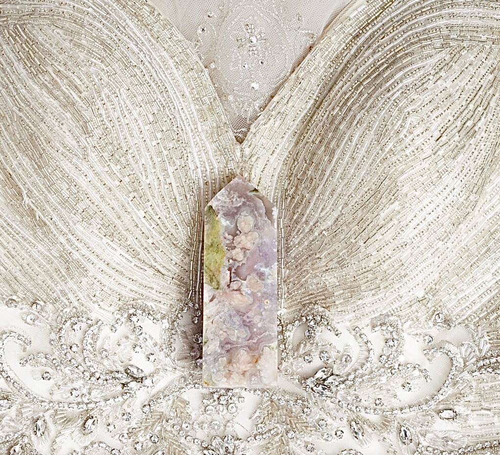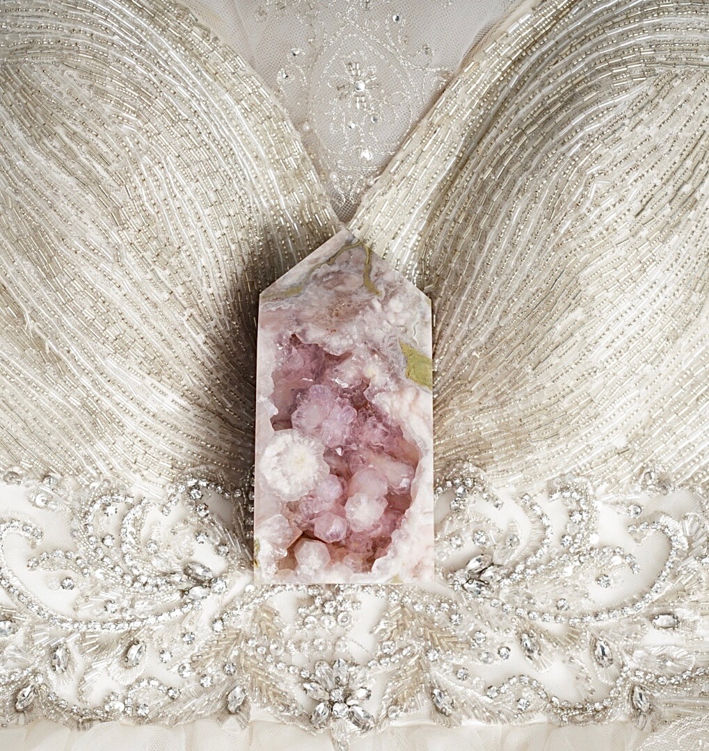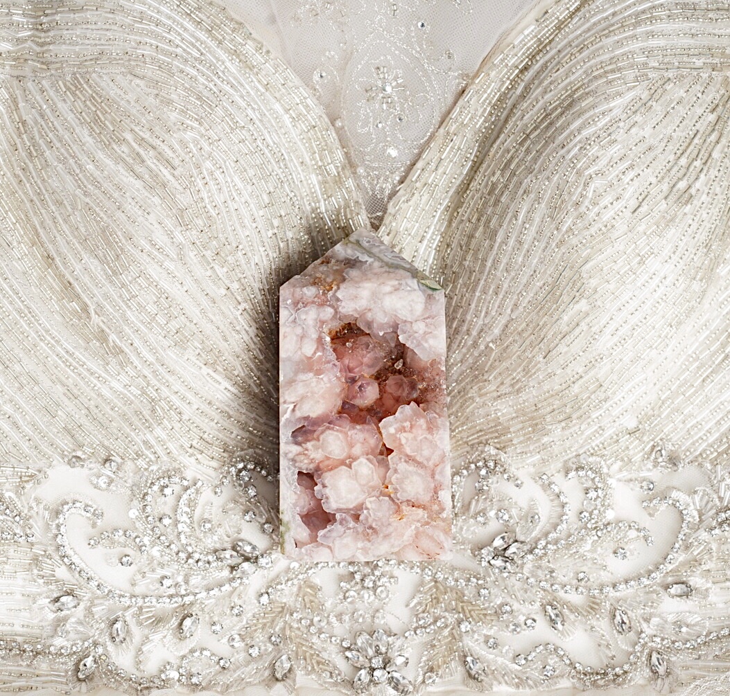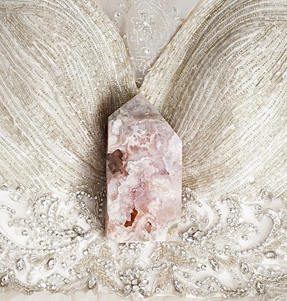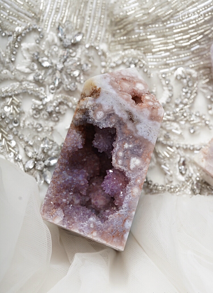 Pink Amethyst, by far one of the most enchanting stones. No collection is complete with out a piece. Jackie stands 4 inches tall and 2 inches wide. We are in love with her druzy clusters and know she will make her forever person very happy!