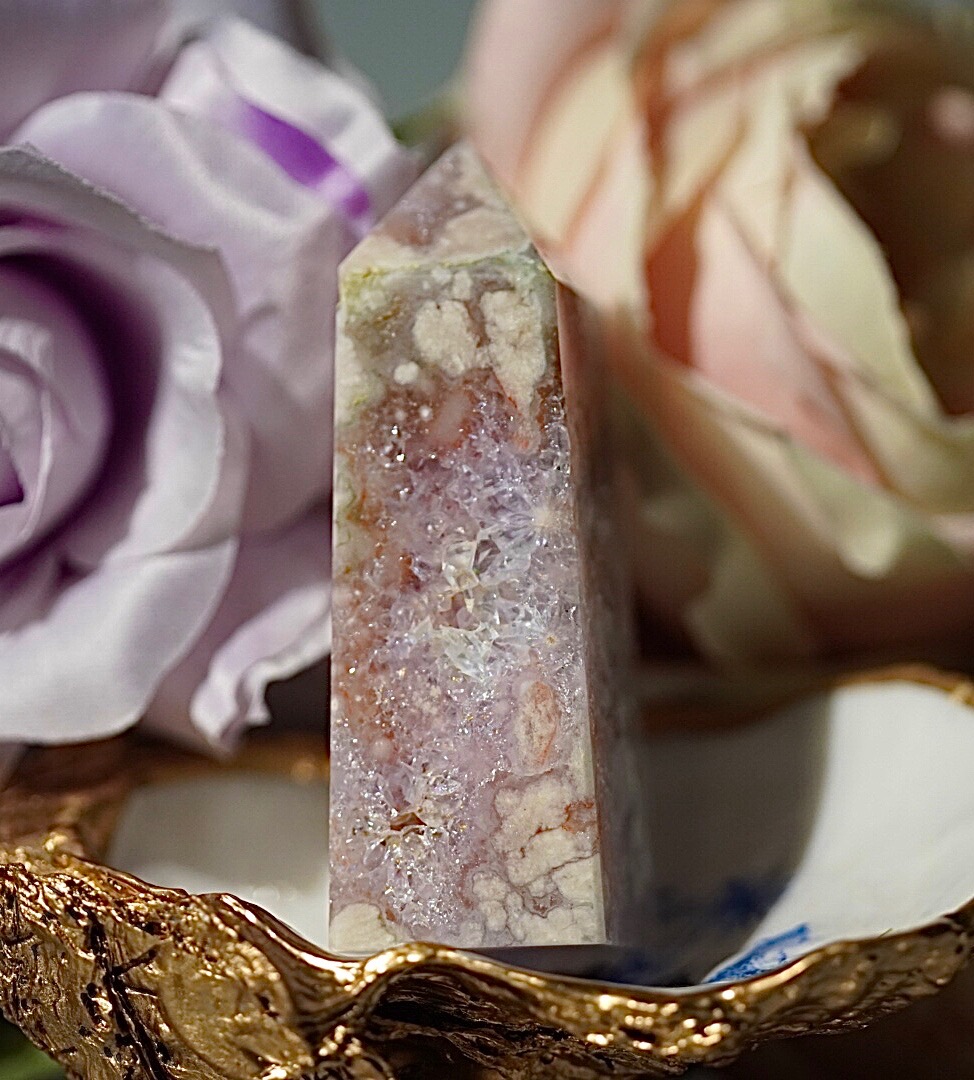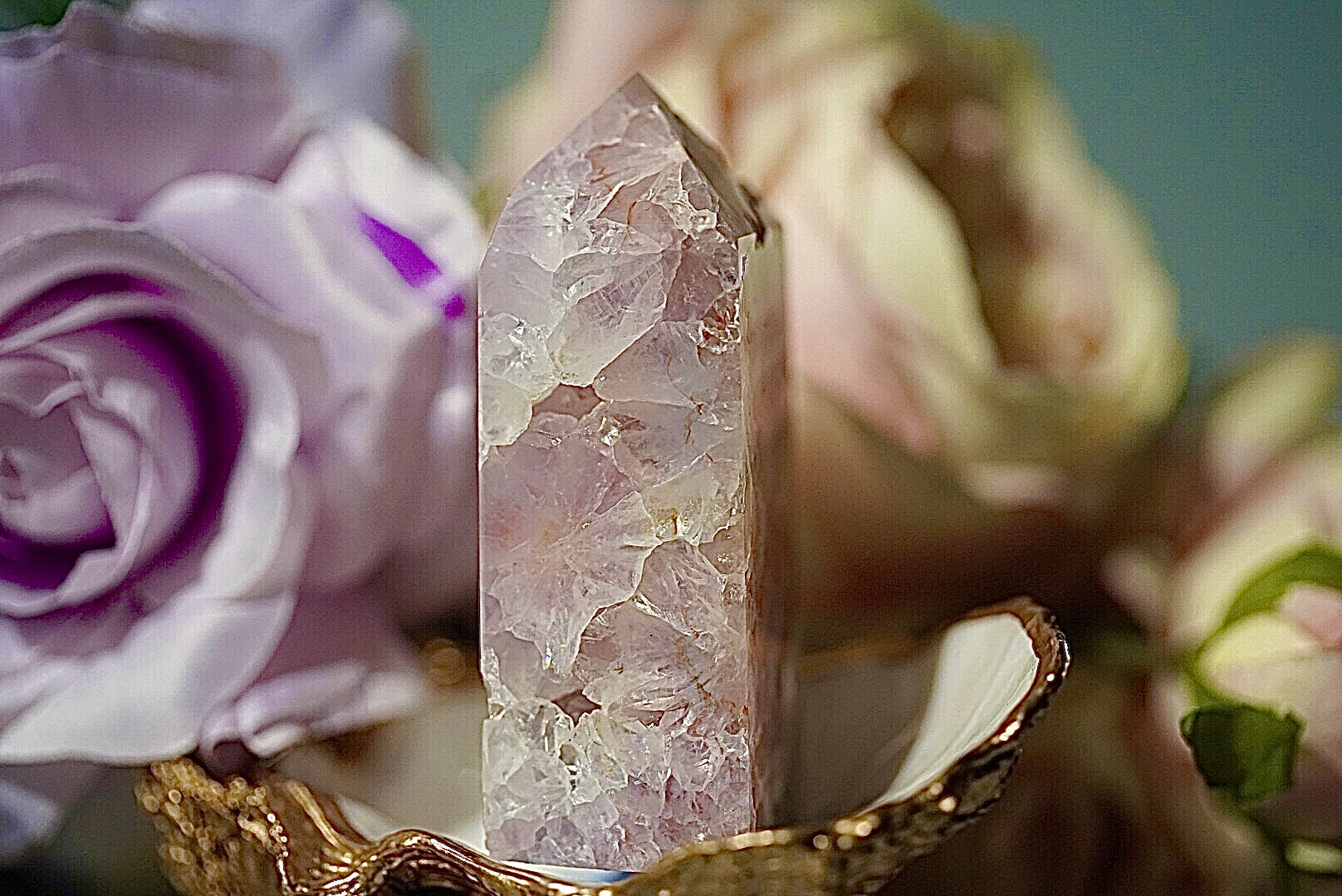 What’s not to love about pink flower amethyst, she’s always a crowd pleaser. This material is a true luxury, not your run of the mill lower end type. A must have for any avid crystal collector. This gorgeous point stands at 6.25 inches tall and 2.5 inches wide. She would make a really special gift to either yourself or any crystal lover. Hate to see this girl go!